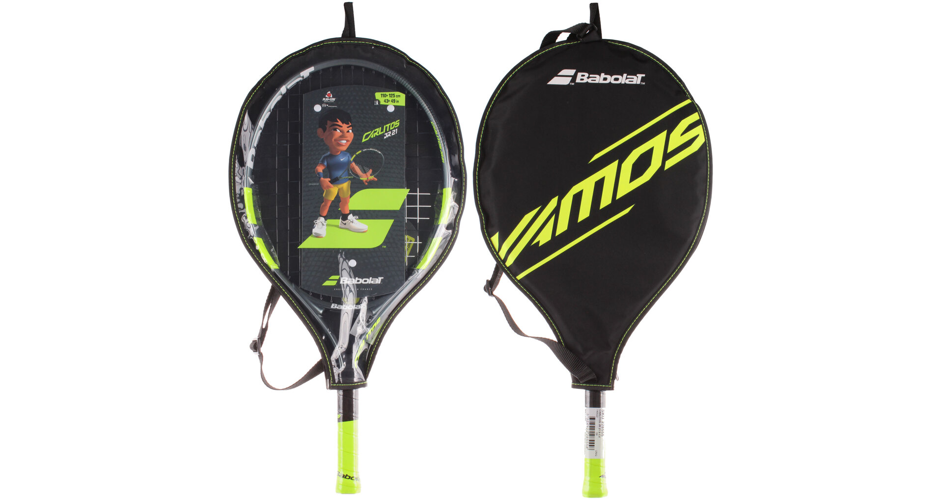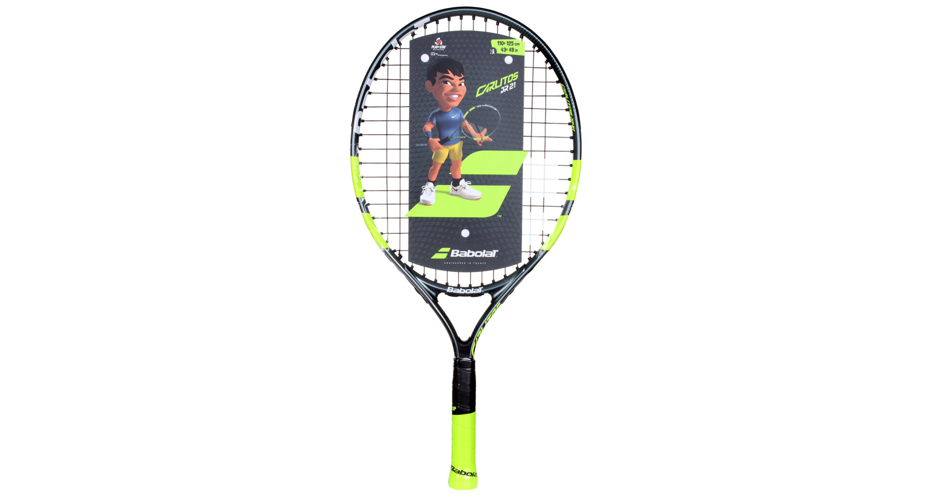 Dětská raketa Babolat Carlitos JR 21 inspirována šampiónem Carlosem Alcarazem je vhodná pro začínající hráče s výškou postavy 110 - 125 cm. Lehká aluminiová konstrukce umožňuje snadnou hratelnost rakety. Raketa využívá dva prvky pro výuku: Learning tool 01 - memo grip - učí dítě držet raketu na konci rukojeti; Learning tool 02 - right attitude - učí držet raketu ve správné poloze. Součástí rakety je i obal s popruhem pro pohodlné nošení.