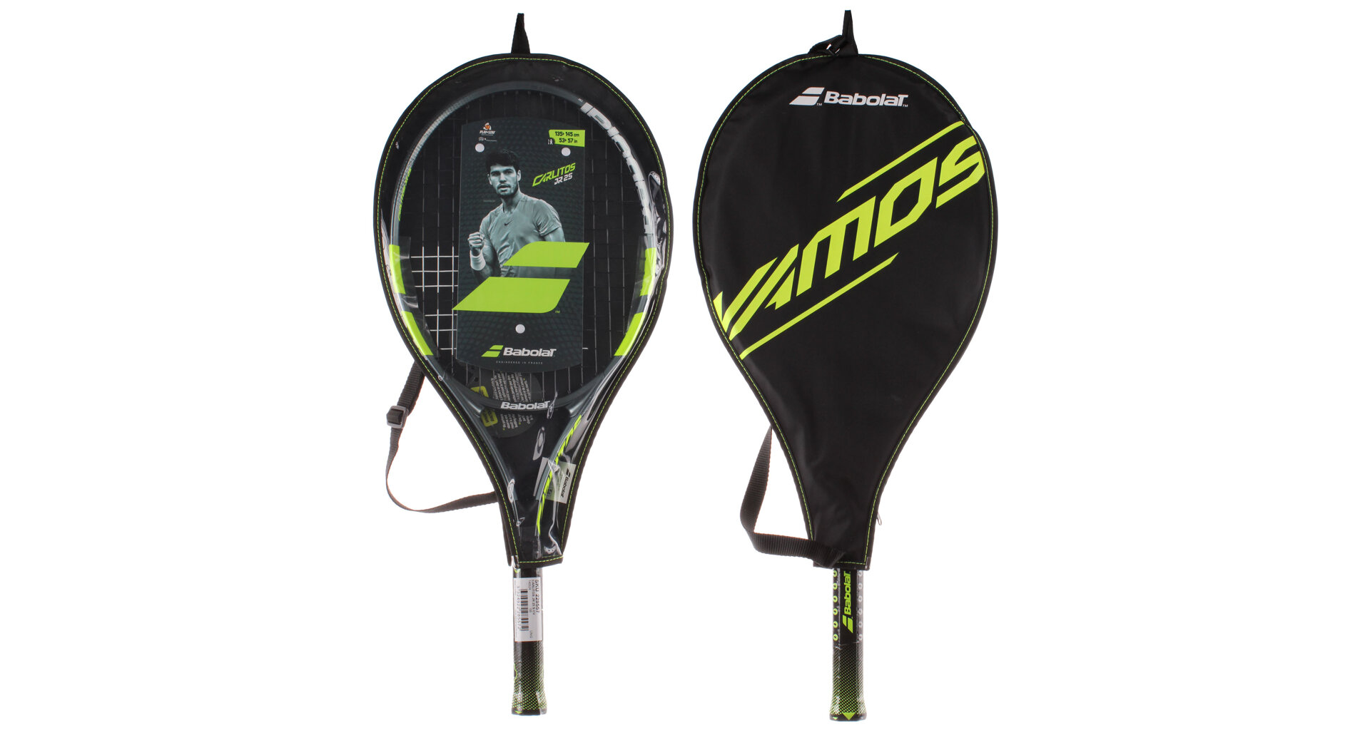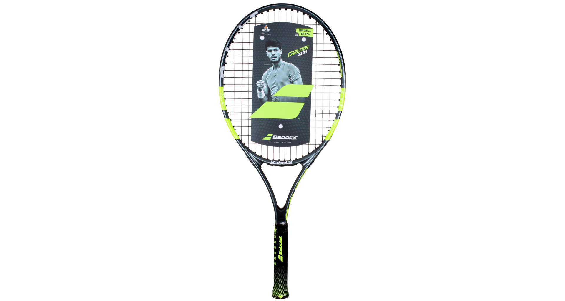 Dětská raketa Babolat Carlitos JR 25 inspirována šampiónem Carlosem Alcarazem je vhodná pro začínající hráče s výškou postavy 135 - 145 cm. Lehká aluminiová konstrukce umožňuje snadnou hratelnost rakety. Raketa využívá dva prvky pro výuku: Learning tool 01 - memo grip - učí dítě držet raketu na konci rukojeti; Learning tool 02 - right attitude - učí držet raketu ve správné poloze. Součástí rakety je i obal s popruhem pro pohodlné nošení.