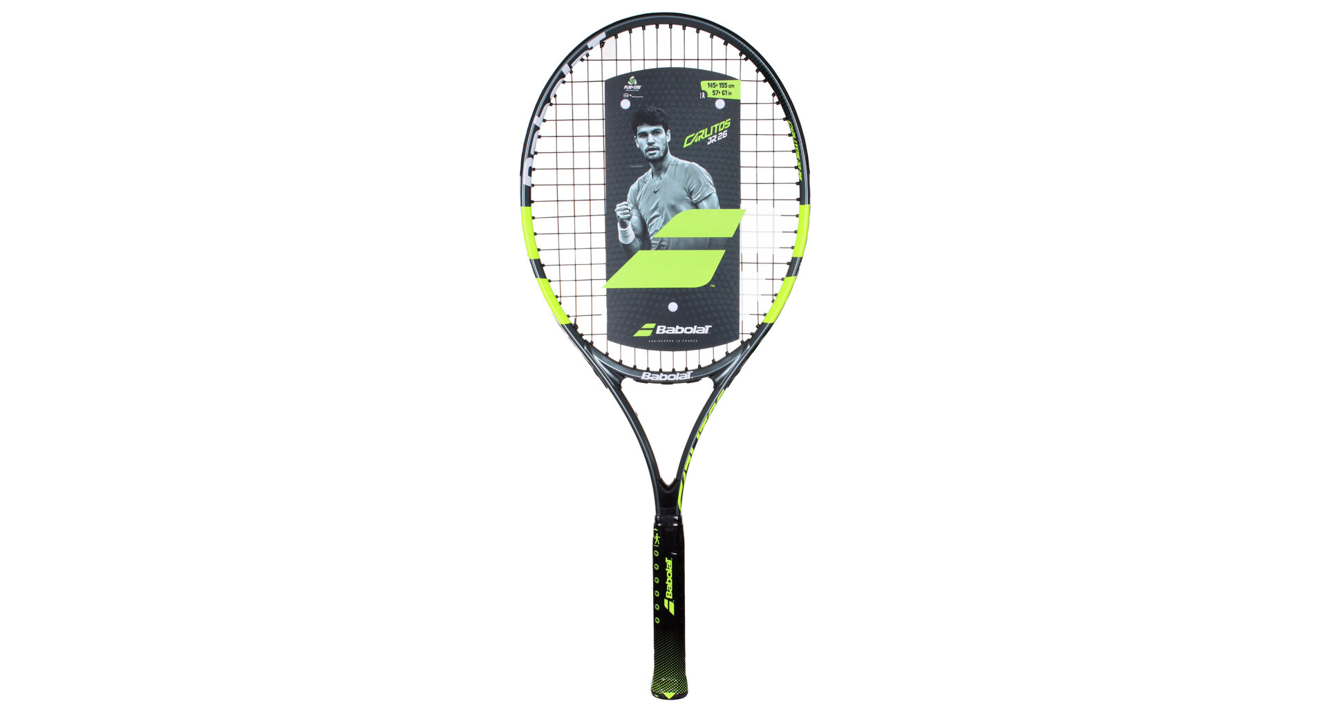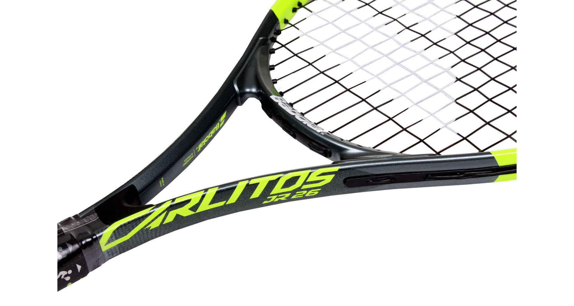 Dětská raketa Babolat Carlitos JR 26 inspirována šampiónem Carlosem Alcarazem je vhodná pro začínající hráče s výškou postavy 145 - 155 cm. Lehká aluminiová konstrukce umožňuje snadnou hratelnost rakety. Raketa využívá dva prvky pro výuku: Learning tool 01 - memo grip - učí dítě držet raketu na konci rukojeti; Learning tool 02 - right attitude - učí držet raketu ve správné poloze. Součástí rakety je i obal s popruhem pro pohodlné nošení.