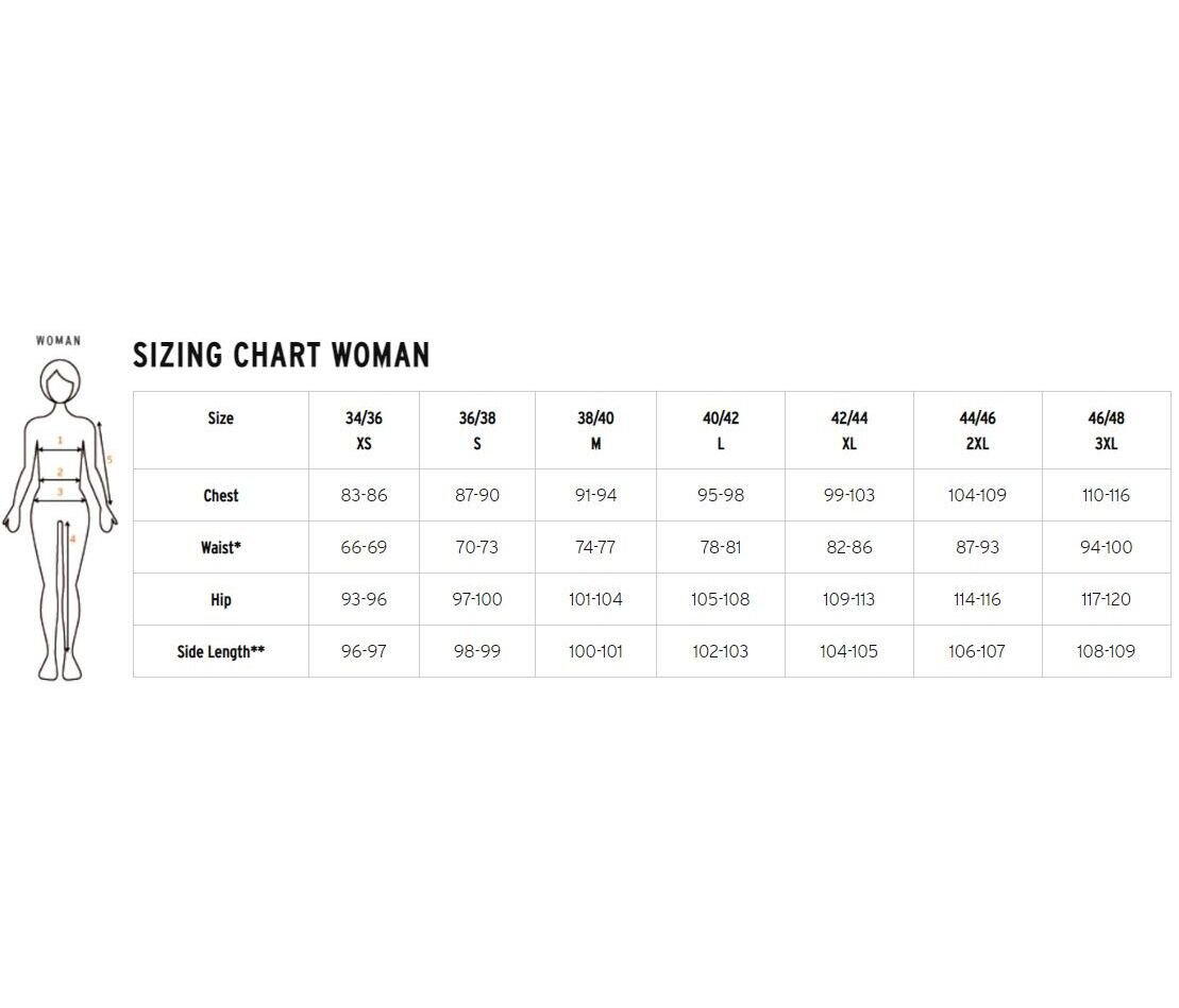 | 34/36 XS | 36/38 S | 38/40 M | 40/42 L | 42/44 XL | 44/46 XXL | 46/48 3XL |