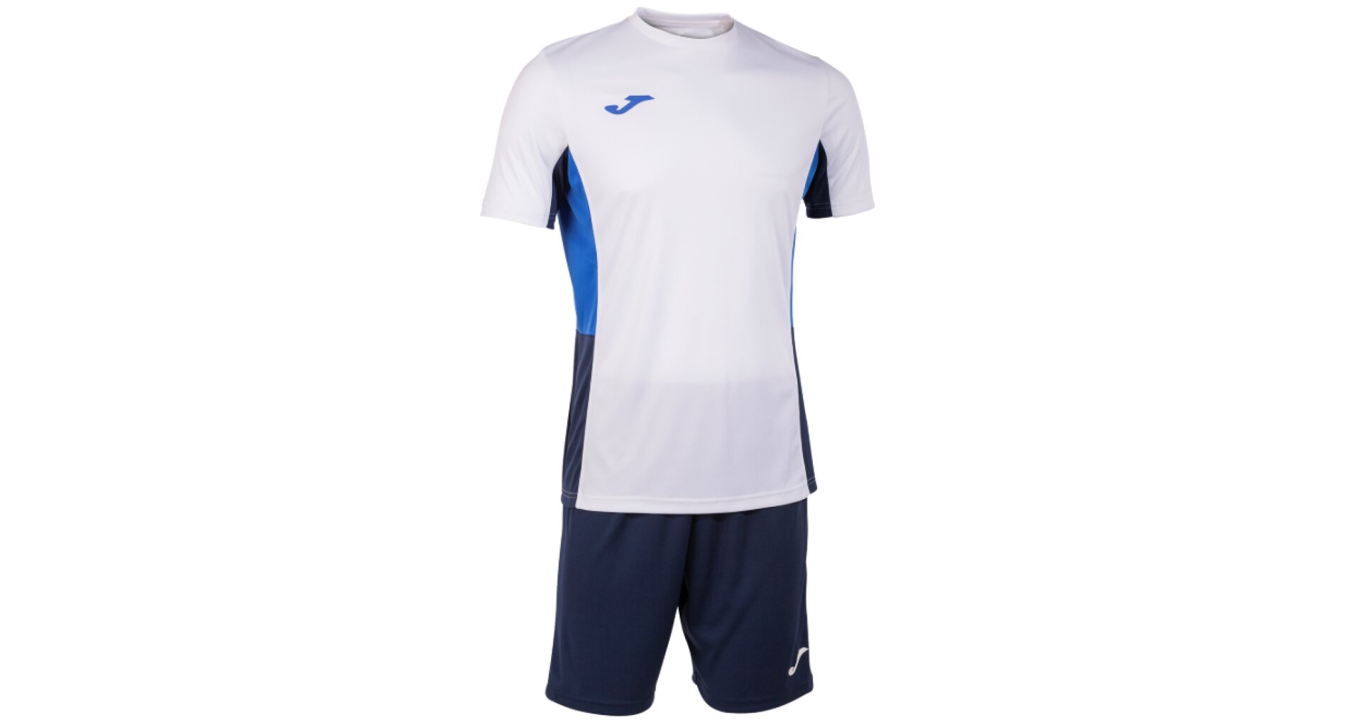 Sportovní set JOMA Danubio II je určený pro chlapce a muže. Tato sada se skládá z trička s krátkým rukávem a šortek vyrobených ze 100% polyesteru, který je lehký, prodyšný, velice pohodlný a při tréninku i náročném zápase poskytuje maximální volnost pohybu. Tričko má elastický výstřih a prodyšnou tkaninu na bocích a v podpaží pro lepší odvod potu. Kraťasy bez kapes mají elastický pas s vnitřní šňůrkou.