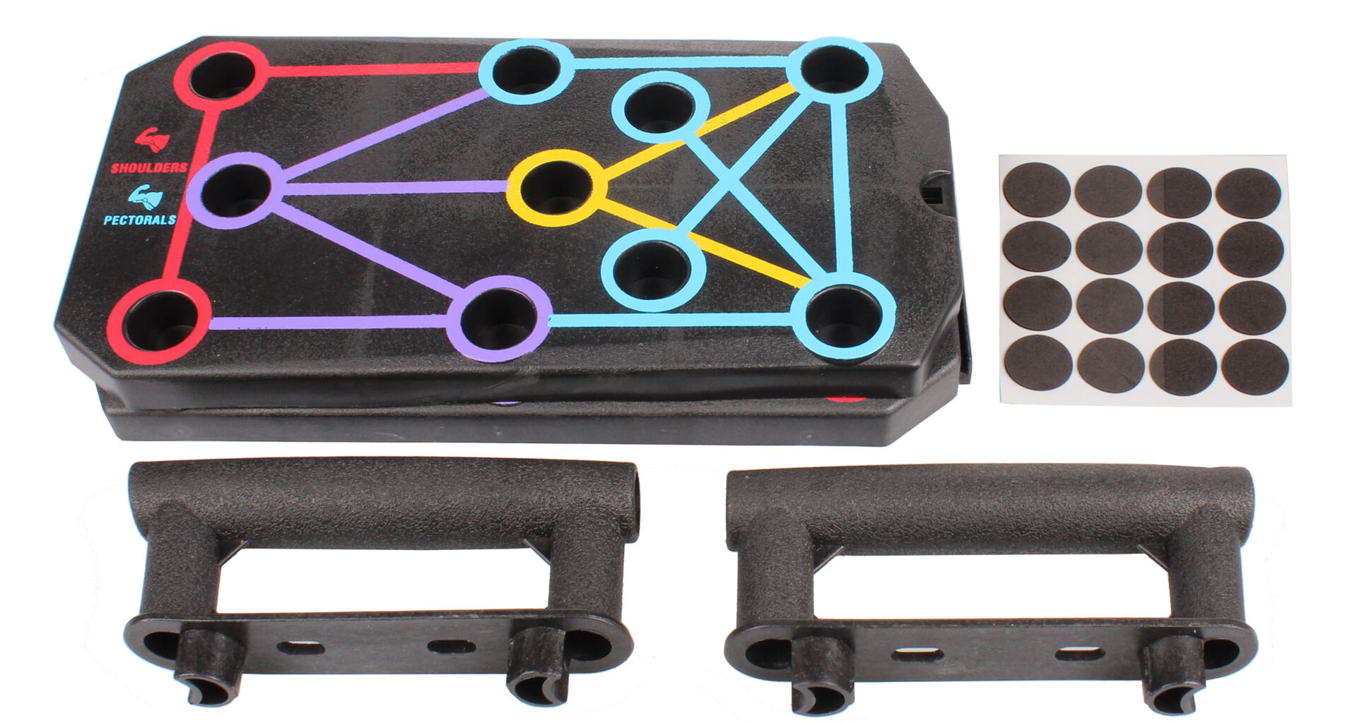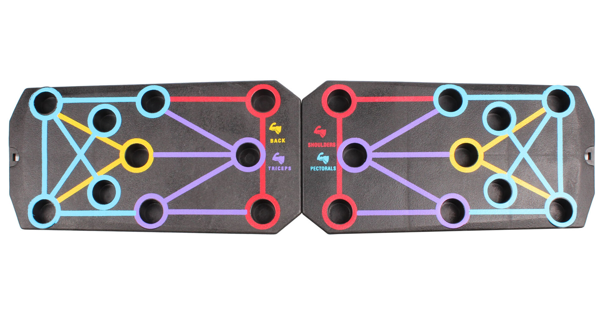 Multifunkční deska na kliky Merco Excellent Classic je určená na posilování zad, tricepsů, ramen a prsních svalů. Stačí jednoduše nastavit přiložené opěrky podle barevně rozlišených poloh na desce a můžete začít cvičit. Skládací deska i opěrky jsou vyrobené z odolného polypropylenu. Tréninková deska Excellent Classic se skládá ze dvou částí, po sestavení má rozměry 62 x 16 x 2 cm a hmotnost přibližně 0,5 kg. Podle barevně odlišených pozic pro madla posilujete oblast, kterou potřebujete. Ideální doplněk pro domácí posilovny.