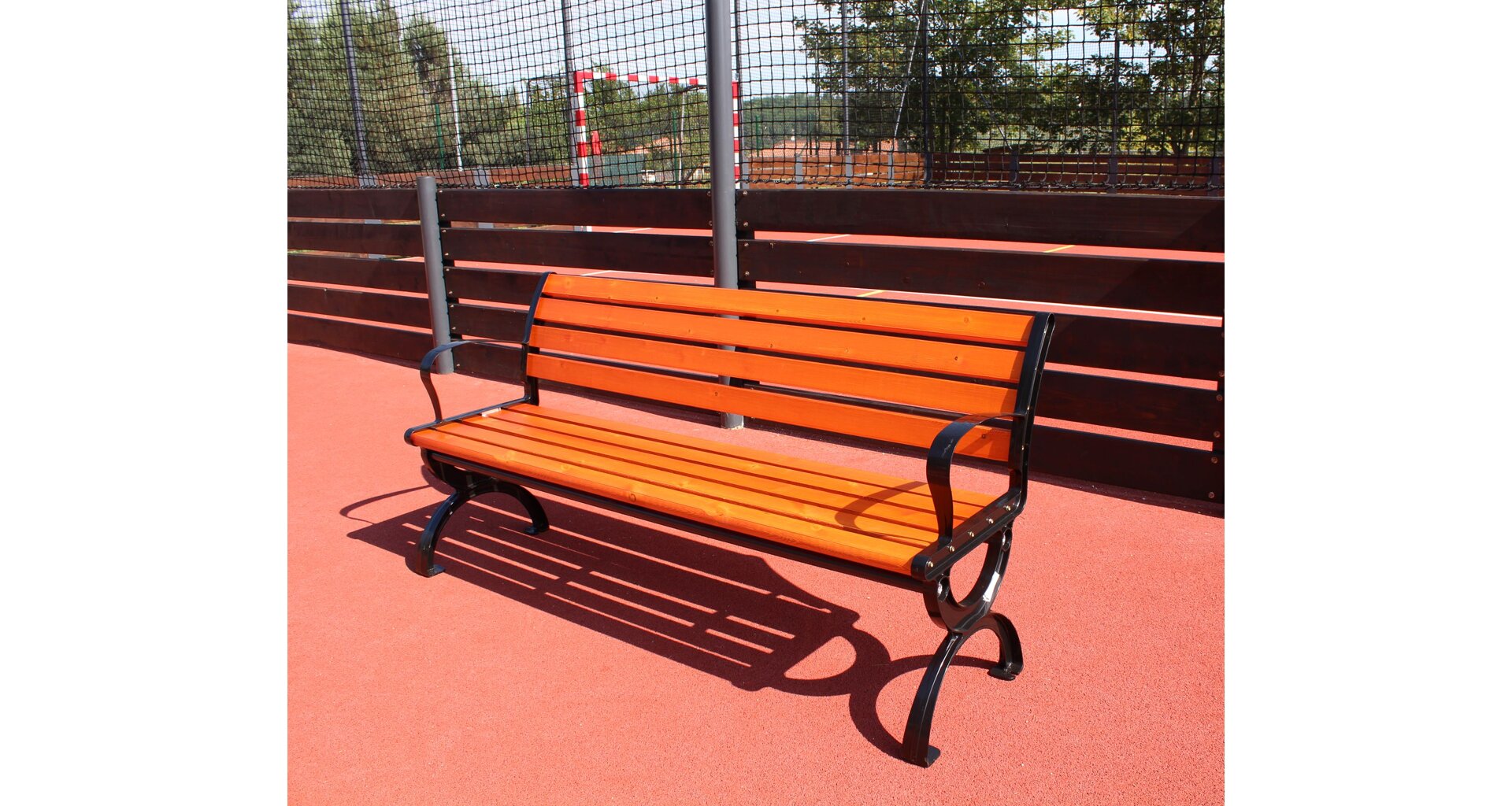 Lehká a elegantní lavička s opěradlem pro venkovní i vnitřní použití. Vhodná k příjemnému posezení na zahradě, balkónu, terase, ale skvěle poslouží i jako místo odpočinku sportovců u hřiště nebo kurtu. Kovové, černě lakované postranice jsou ošetřeny antikorozní úpravou, latě z masivního kafrového dřeva jsou ošetřené základní impregnací a na vnější straně sedací a opěrné části jsou natřené lesklým exteriérovým lakem.